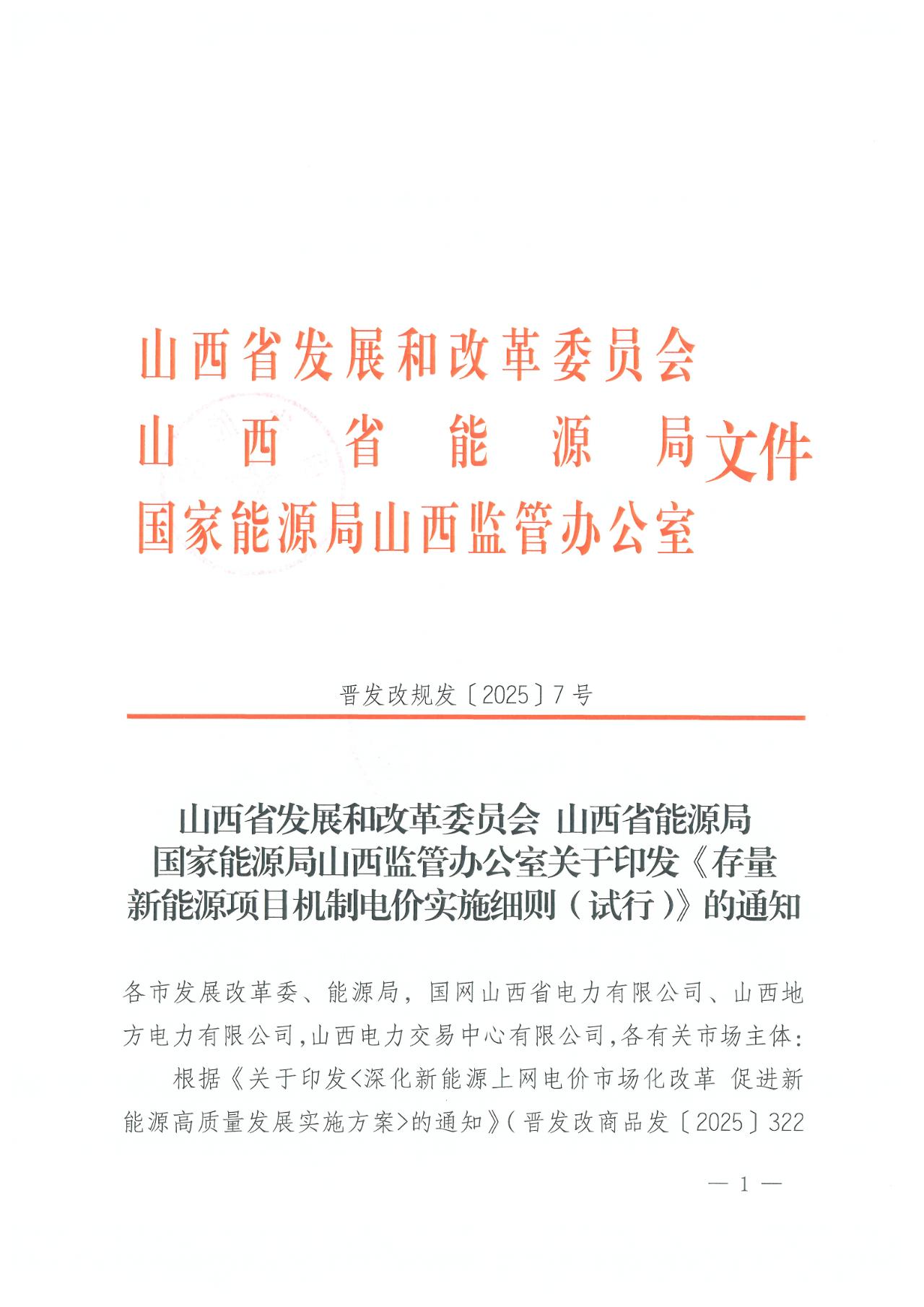 近日,山西136号文承接文件《深化新能源上网电价市场化改革促进新能源高质量发展实施方案》、《存量新能源项目机制电价实施细则(试行)》、《增量新能源项目机制电价实施细则(试行)》陆续下发。