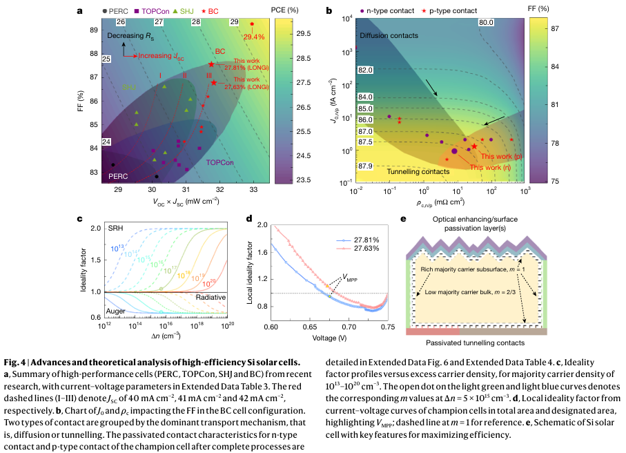 - 理想因子模型与载流子调控:提出理想因子与复合机制的关联模型,明确体与表面复合对填充因子的影响,为高效电池设计提供理论指导。