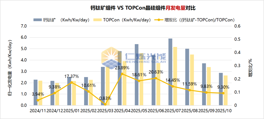 图4 钙钛矿组件对比TOPCon晶硅组件月发电量对比