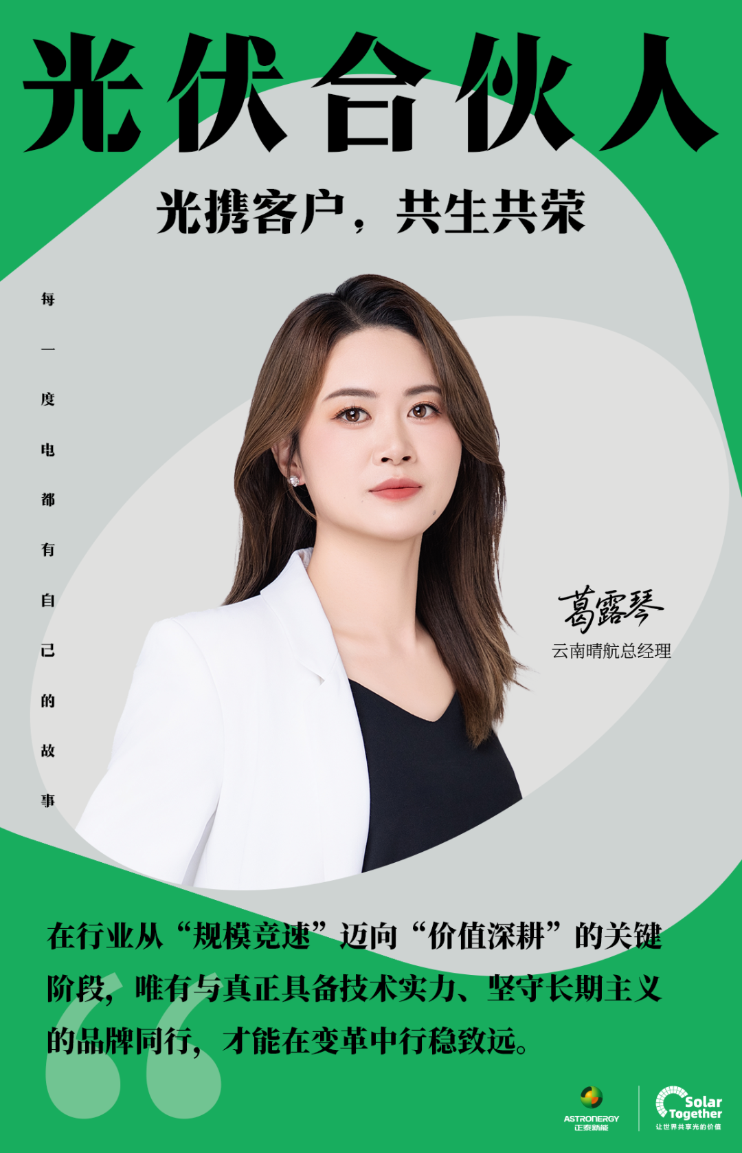 深耕光伏行业多年,葛露琴对行业有着自己独到的洞察和判断,她为云南晴航制定了清晰的增长路径——继续深化与正泰新能的战略合作,以ASTRO N系列产品为主,2025年预计完成100MW出货目标,2026年力争实现150-200MW的产品出货。