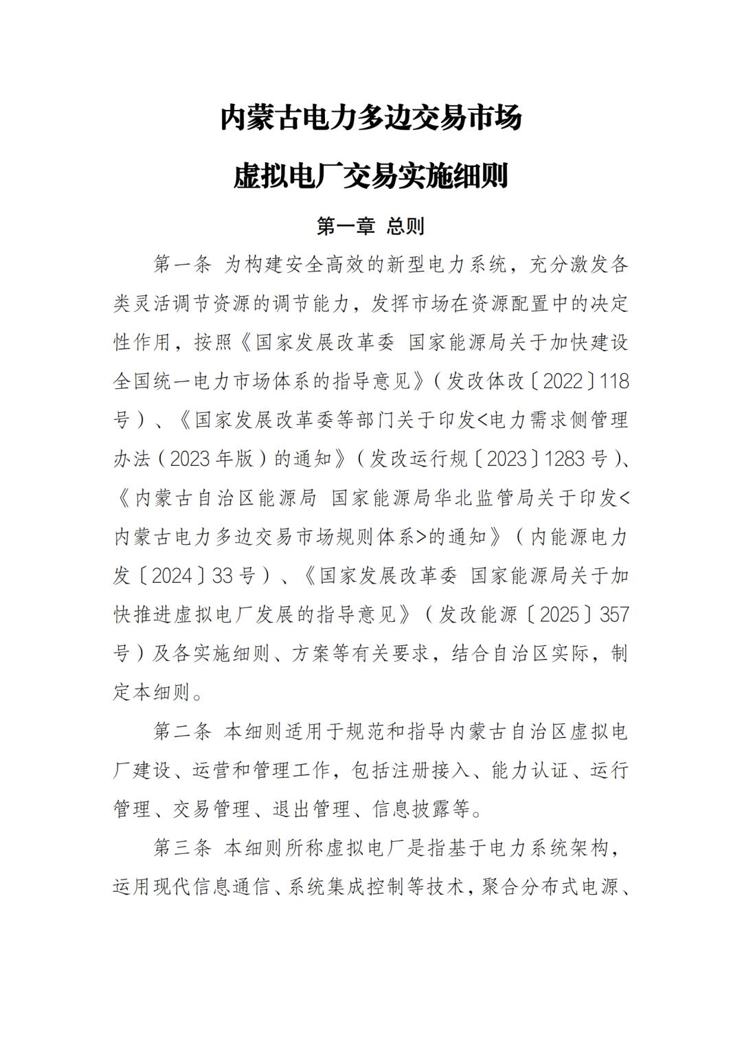 《内蒙古电力多边交易市场虚拟电厂交易实施细则》经内蒙古电力多边交易市场管理委员会审议通过,并报国家能源局华北监管局、内蒙古自治区能源局备案,现予以发布。