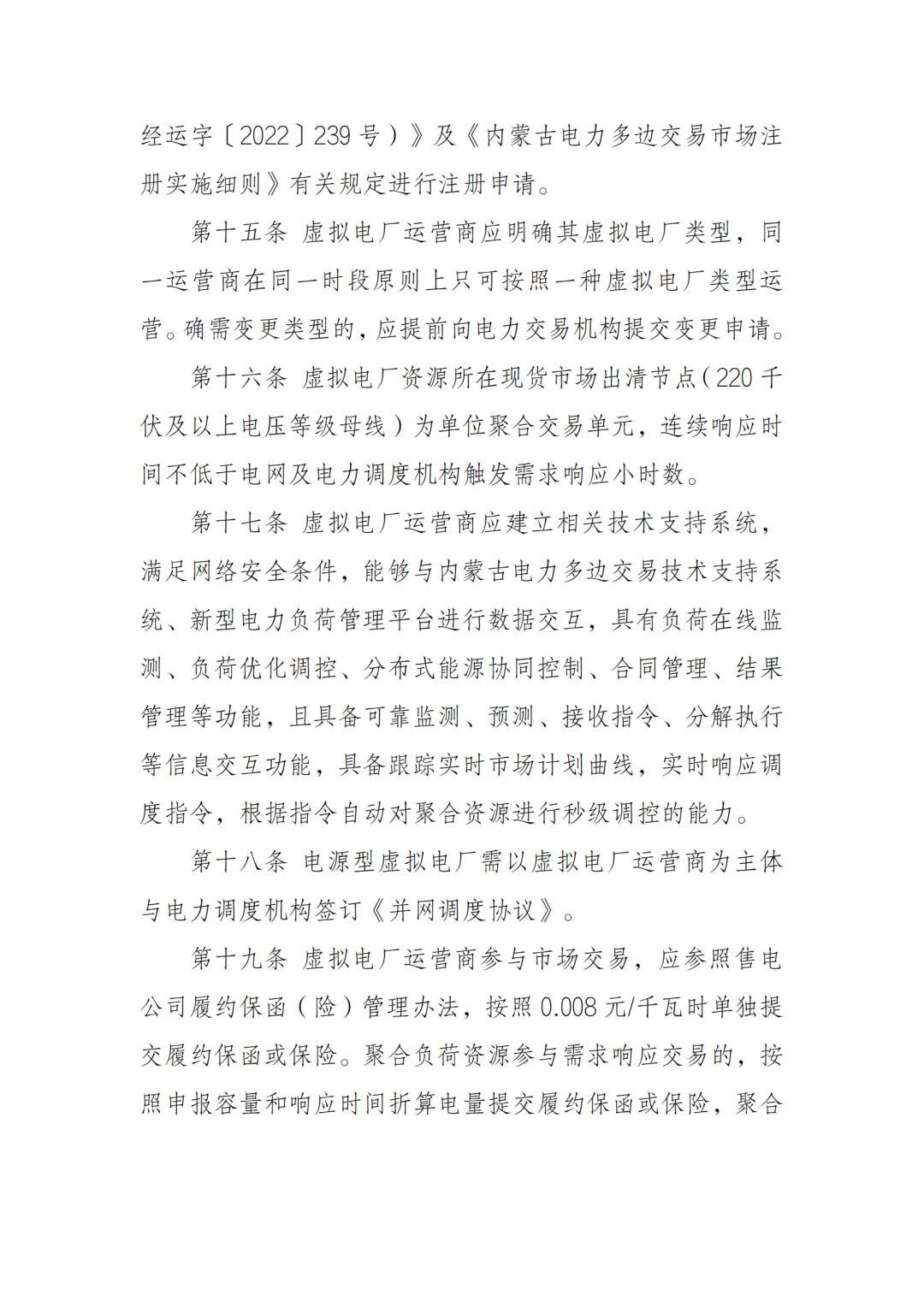 关于发布《内蒙古电力多边交易市场虚拟电厂交易实施细则》的通知