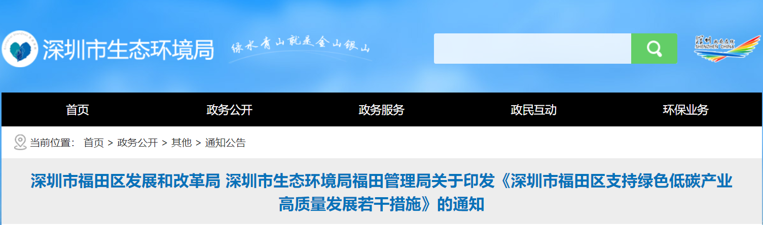 深圳市福田区支持绿色低碳产业高质量发展若干措施