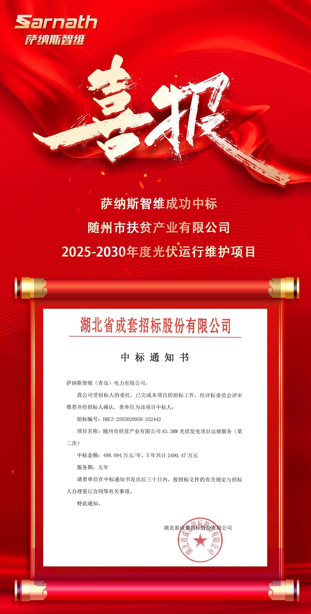 喜报!萨纳斯智维成功中标随州扶贫83.3MW项目!
