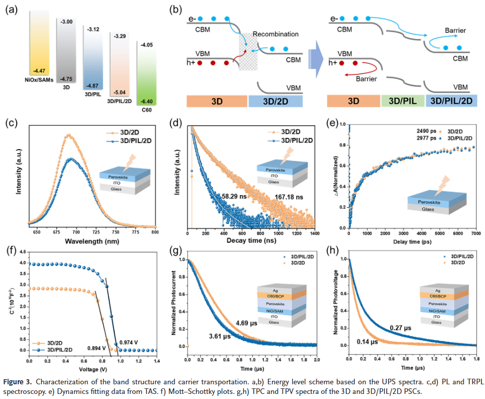 - 载流子管理与高效提取:PIL诱导形成梯度能级,显著降低了界面处少数载流子的积累与复合,使载流子提取和传输效率得到全面提升。