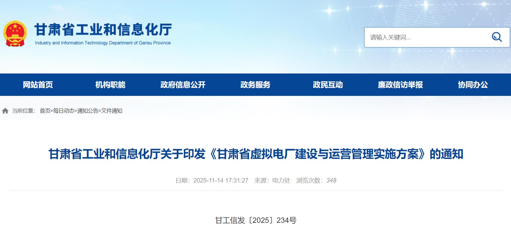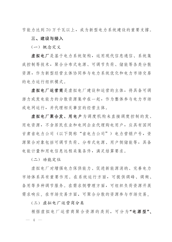 甘肃省工业和信息化厅关于印发《甘肃省虚拟电厂建设与运营管理实施方案》的通知