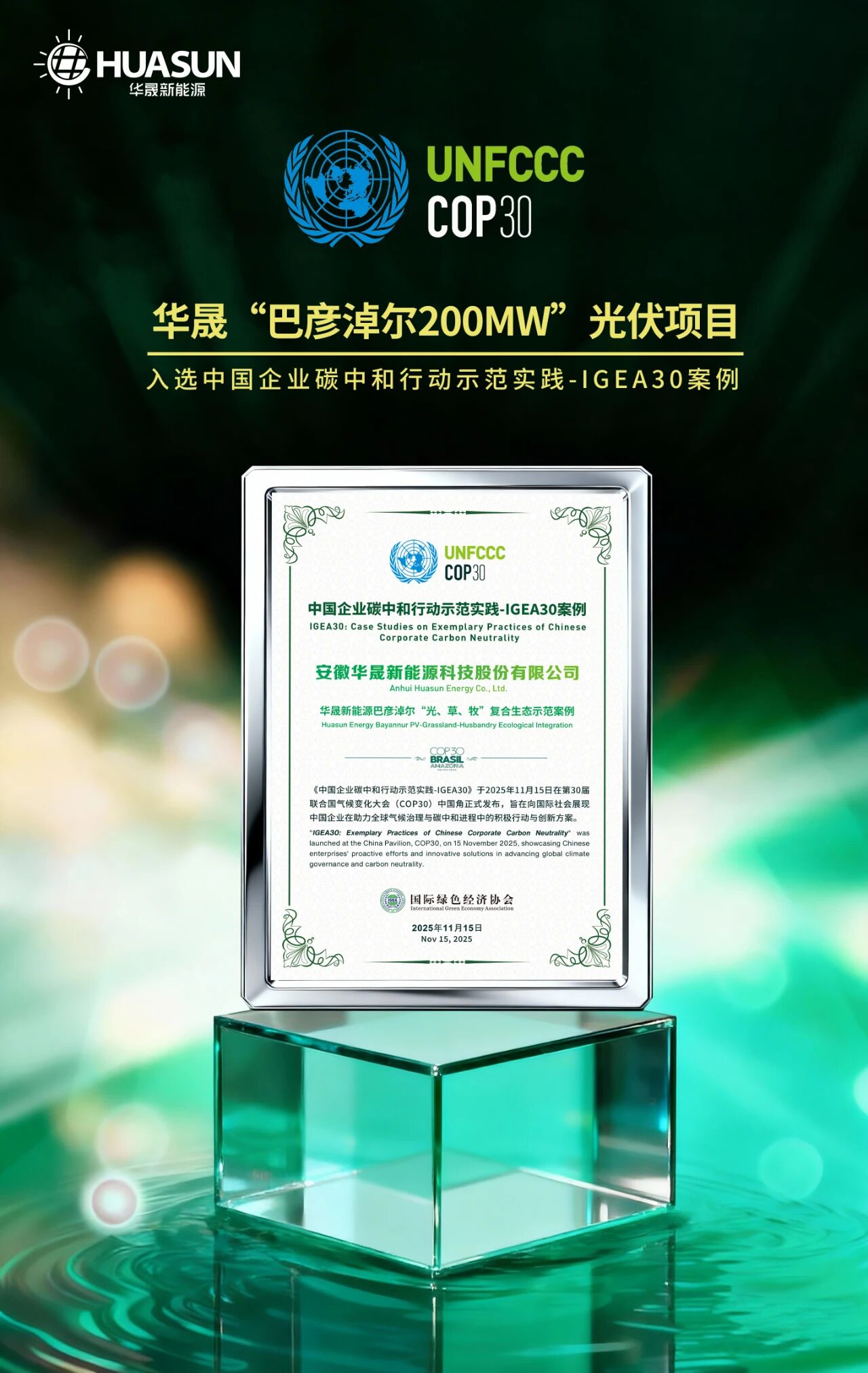 这是历届大会中首次以系统化方式呈现中国企业在绿色低碳、技术创新与可持续发展领域的前沿探索与实践成果,具有重要的国际示范意义。作为首批30家入选企业之一,华晟新能源以高效HJT技术赋能区域生态价值提升,通过“光伏+草牧业”模式探索清洁能源与生态修复的深度融合,为全球展示了中国新能源企业在推动能源转型、助力生态文明建设中的创新能力与责任担当。