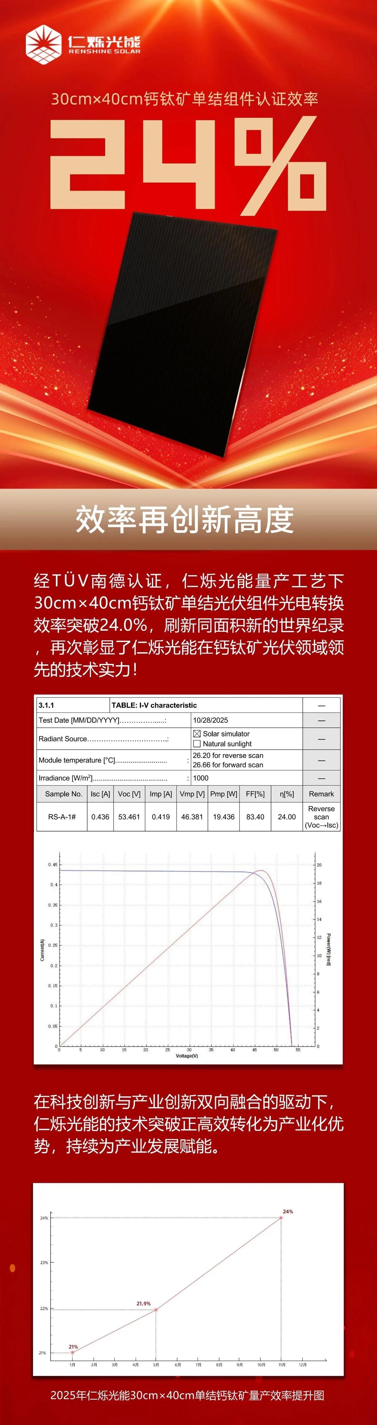 24.0%!仁烁光能再破钙钛矿新纪录!