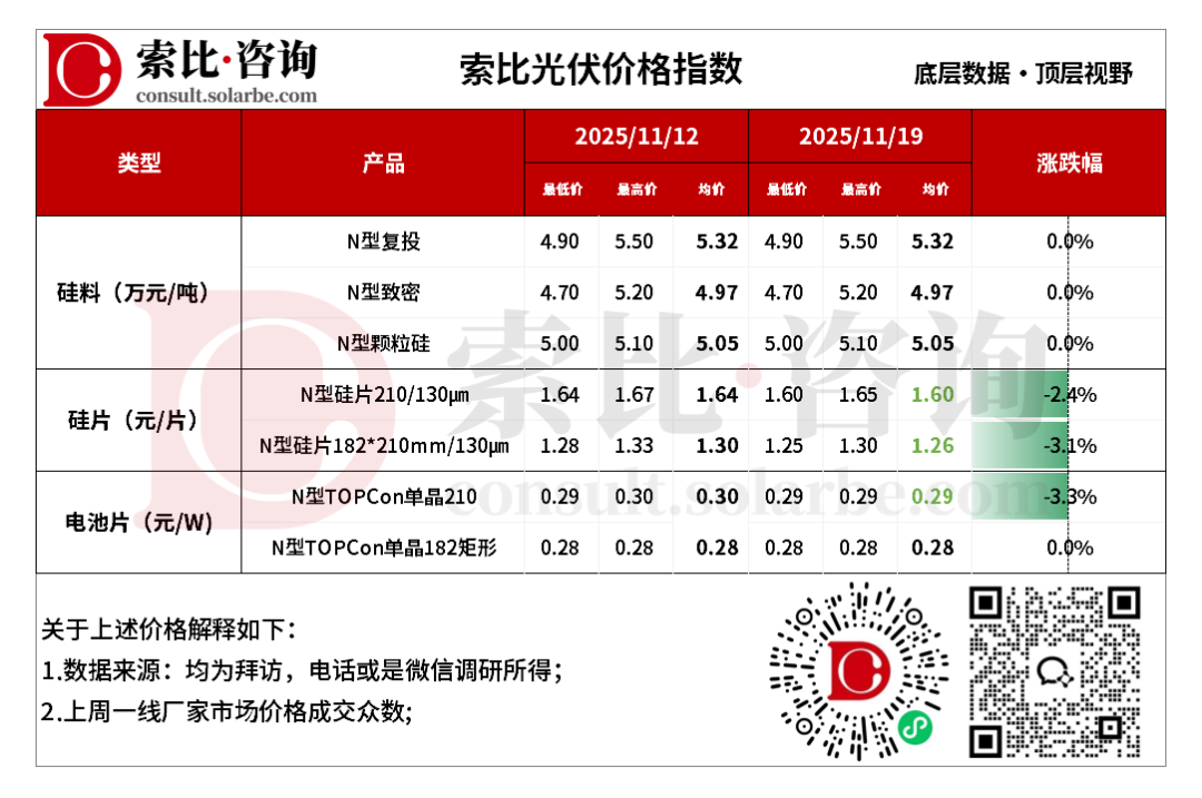 1、数据均为索比咨询整理,价格为均价,有疑问请联系我们,欢迎探讨
