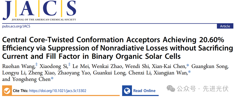 Wang, R.; Si, X.; Mei, L.; et al. Central Core-Twisted Conformation Acceptors Achieving 20.60% Efficiency via Suppression of Nonradiative Losses without Sacrificing Current and Fill Factor in Binary Organic Solar Cells.J. Am. Chem. Soc. 2025.