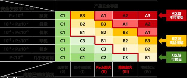 华为数字能源联合提出的评估体系将储能系统安全风险由高至低分为A(不可接受)、B(风险缓解)、C(可接受)三个等级,并明确了各等级对应的失效概率要求。其中,A级风险极高,系统安全风险完全不可控,重大安全事故概率极高;B级风险较高,必须通过持续优化产品设计与引入创新技术以降低风险;C级为安全风险总体可控,可有效避免整站火灾等严重后果。