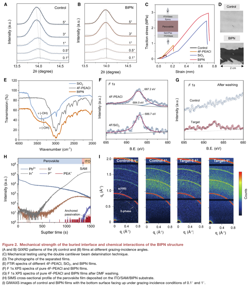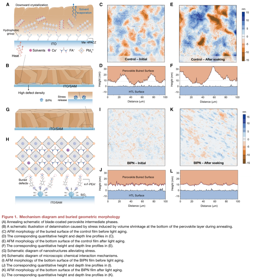 - 创新BIPN结构设计:通过SiO₂纳米球与4F-PEACl分子的协同作用,实现界面应力释放与缺陷钝化的双重增强。