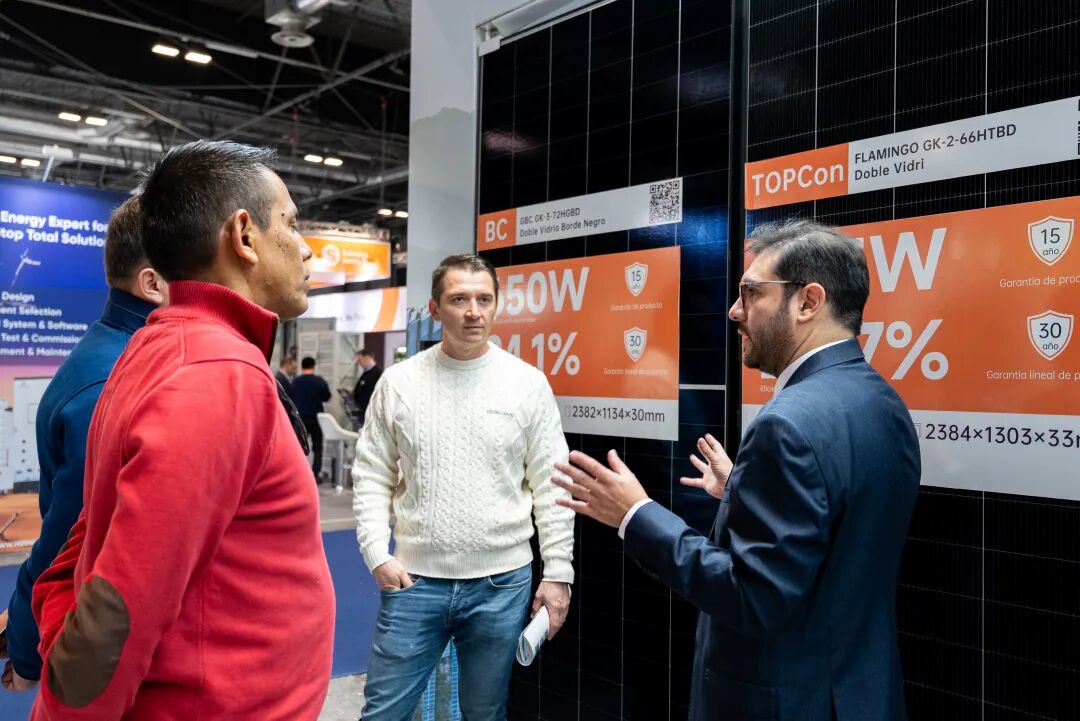 近日,2025年西班牙能源与环保展(GENERA+MATELEC)在马德里圆满落幕。高景太阳能携旗下顶尖的BC系列及TOPCon光伏产品重磅亮相,凭借BC全黑组件的卓越美学表现、高效率产品组合的系统输出,以及与西班牙本土企业的战略签约,在展会期间引发行业关注,实现了品牌展示与技术交流的双重目标。
