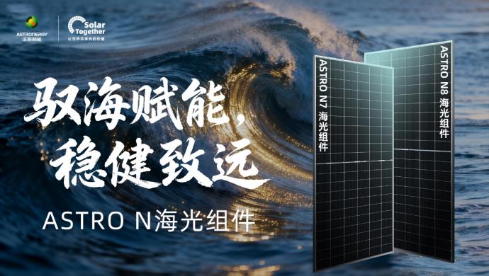 正泰新能ASTRO N海光组件覆盖ASTRO N7和ASTRO N8系列,功率与主流产品保持一致,但在多项封装技术及边框进行定向强化升级,以高密封封装体系搭配强载荷边框支撑,适应多变的海洋环境。