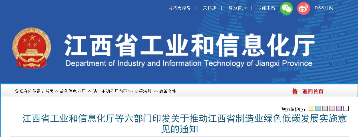江西省工业和信息化厅等六部门印发关于推动江西省制造业绿色低碳发展实施意见的通知