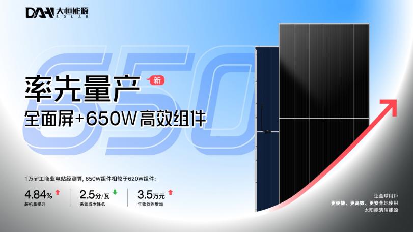 在“双碳”目标提出五周年之际,大恒能源以650W高功率组件突破技术瓶颈,深耕产品价值!创新引擎全速运转,新一代670W组件已步入量产轨道,以不懈的技术攀登,驱动产业迈向新高地!
