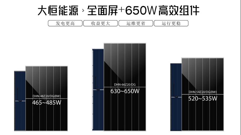 为实现光伏系统“发电更高、收益更大、运维更省、运行更稳”的目标,大恒能源通过持续技术创新,重塑产品全生命周期的价值标准,在核心材料与关键工艺等维度集中突破:采用大硅片+半片钝化+DBB技术,缩短电流传输路径,降低能量损耗,大幅提升电池受光面积,未来可继续叠加多分片、钝化优化等技术,实现更高的组件效率;运用新型提效辅材优化封装工艺,保障电站长期稳定运行;加持全面屏防积灰技术,实现发电量提升6-15%,运维降本超50%。
