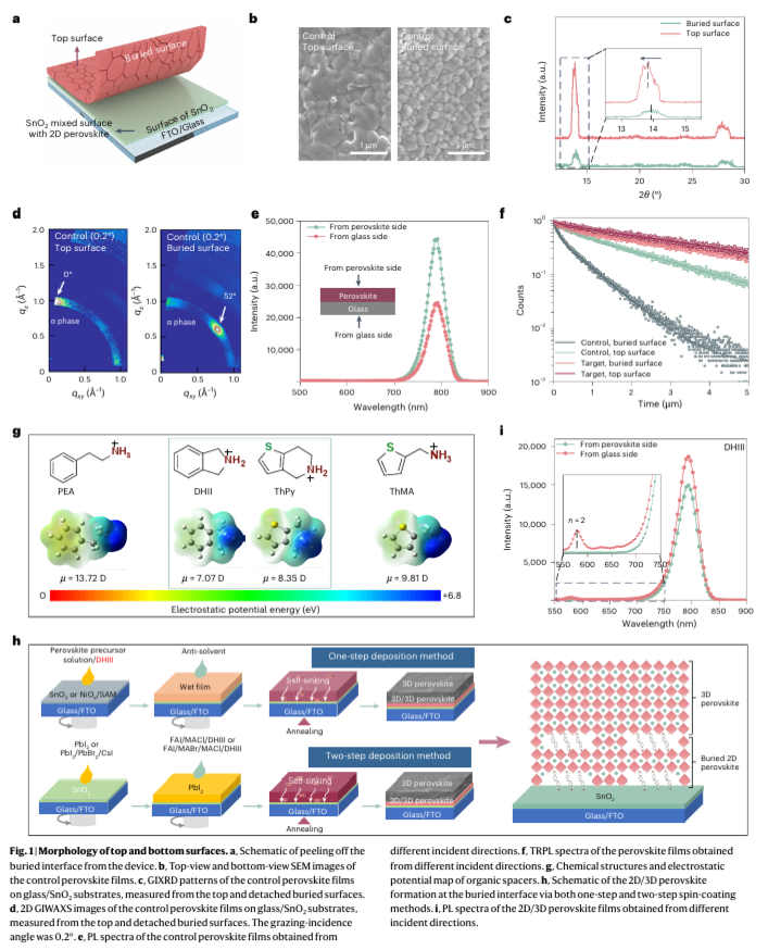 实现钙钛矿薄膜在顶面和埋底界面均匀结晶是释放其光伏潜力的关键,但目前仍是一个未解决的难题。埋底界面尤其存在结晶质量差、缺陷密度高等问题。