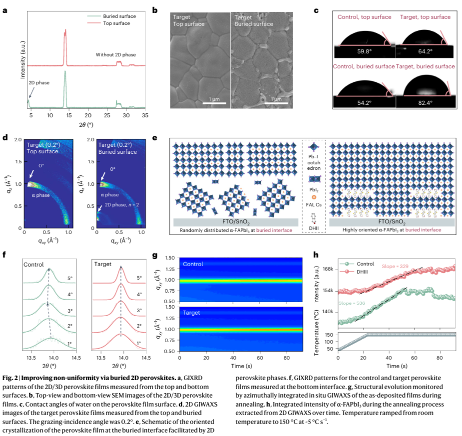 Gao, Y., Liu, H., Song, Z. et al. Spontaneous 2D perovskite formation at the buried interface of perovskite solar cells enhances crystallization uniformity and defect passivation. Nat. Photon. (2025).