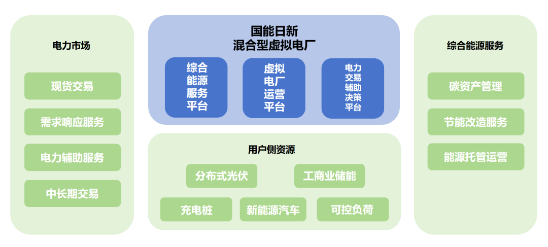 国能日新依托自身技术积淀与市场化经验,创新打造混合型虚拟电厂核心平台,构建“电力市场收益+综合能源收益+能源数据数智化体系服务”三维收益体系,以“精准破堵、价值深耕”为核心,打通“用户侧资源激活—服务侧全链赋能—市场侧高效变现”的完整闭环,为广东分布式主体提供一站式解决方案。