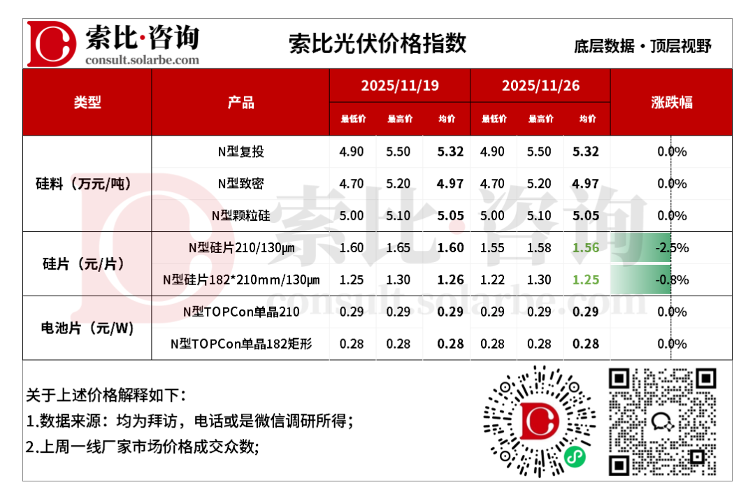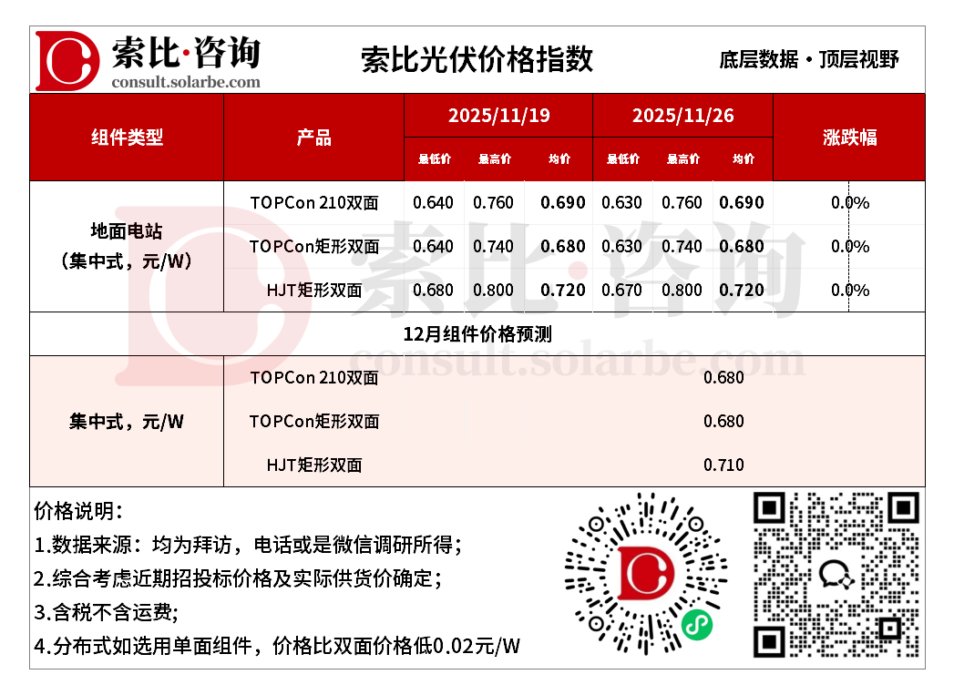 1、数据均为索比咨询整理,价格为均价,有疑问请联系我们,欢迎探讨