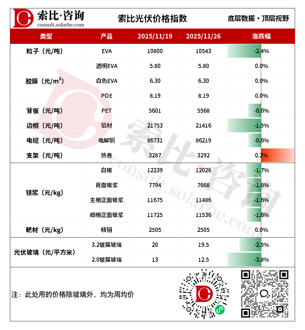 1、数据均为索比咨询整理,价格为均价,有疑问请联系我们,欢迎探讨
