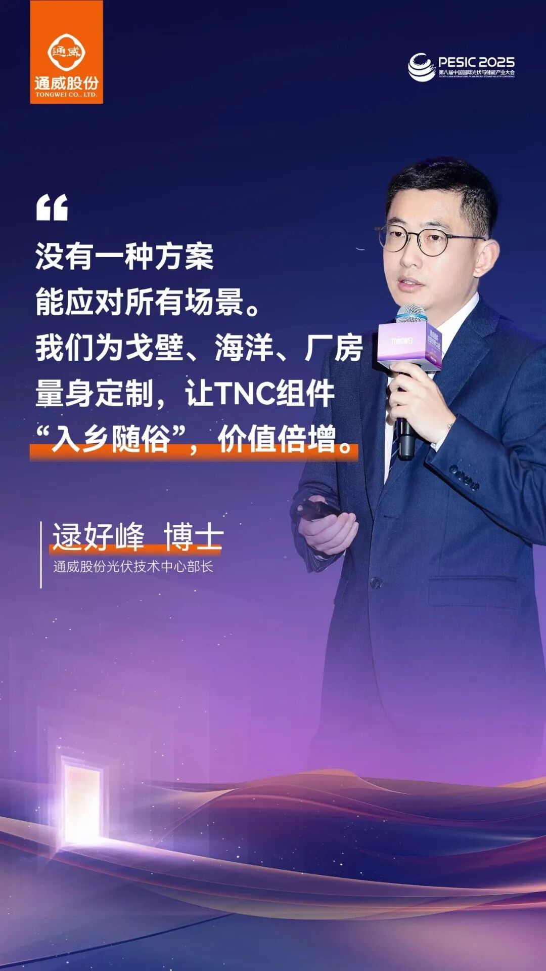 而在技术层面,光伏效率提升仍将主要依靠技术进步与产业创新。未来3-5年,TOPCon技术路线将继续保持主流地位,通威始终将质量视为企业生命线,通威坚持以质量拓展市场、以质量创造效益。而长久以来的产业、技术积累也为新一代TNC 3.0多分片组件提供了坚实支撑。
