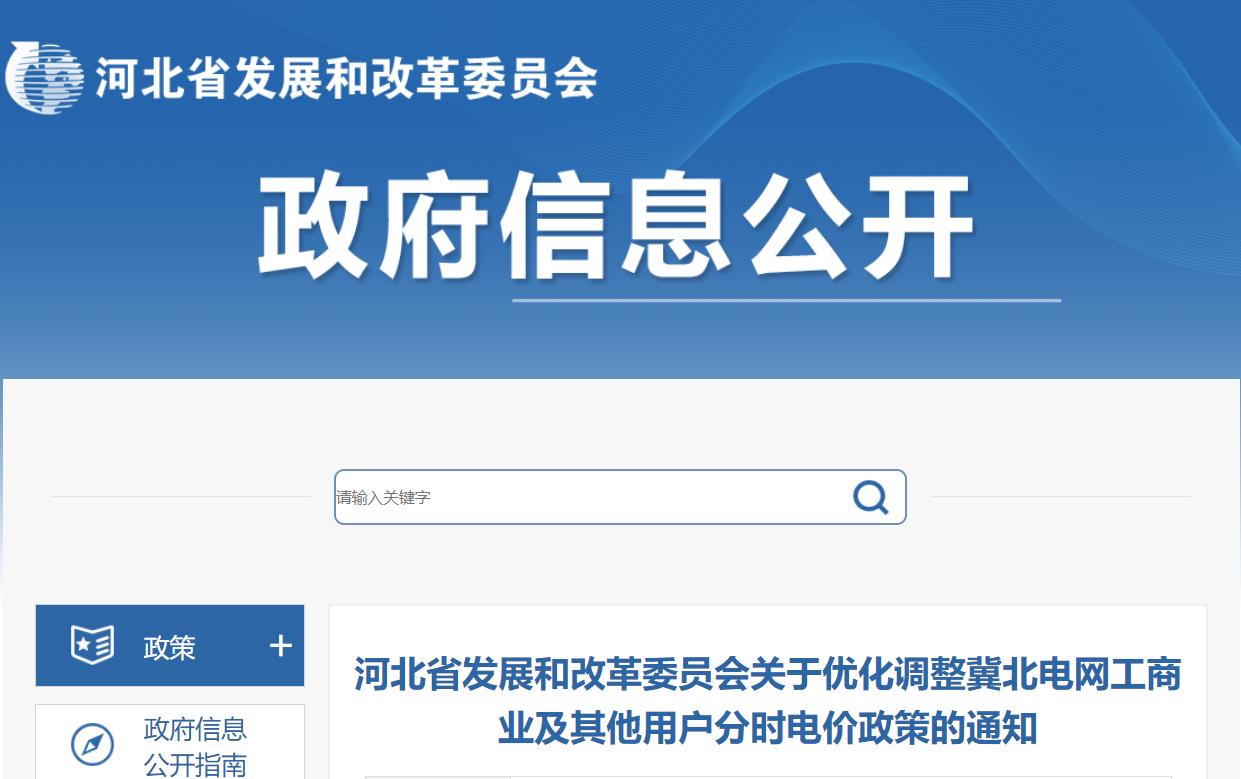 河北省发展和改革委员会关于优化调整冀北电网工商业及其他用户分时电价政策的通知