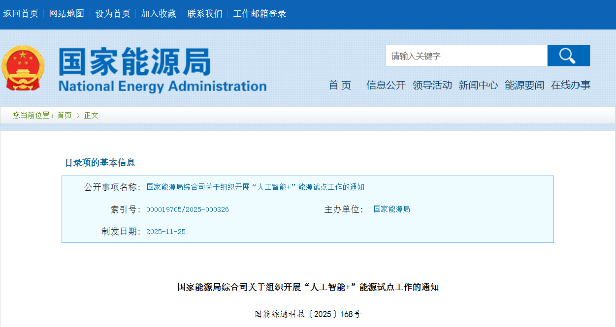 国家能源局综合司关于组织开展“人工智能+”能源试点工作的通知