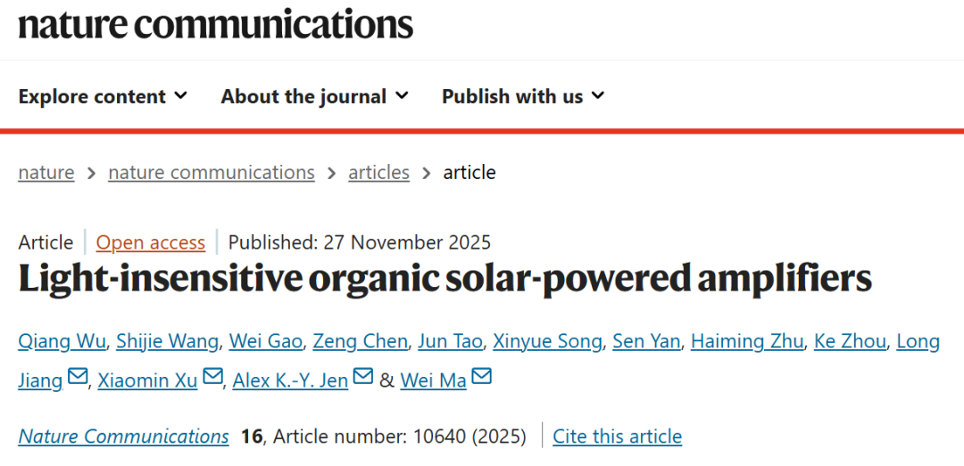 Wu, Q., Wang, S., Gao, W. et al. Light-insensitive organic solar-powered amplifiers. Nat Commun 16, 10640 (2025).