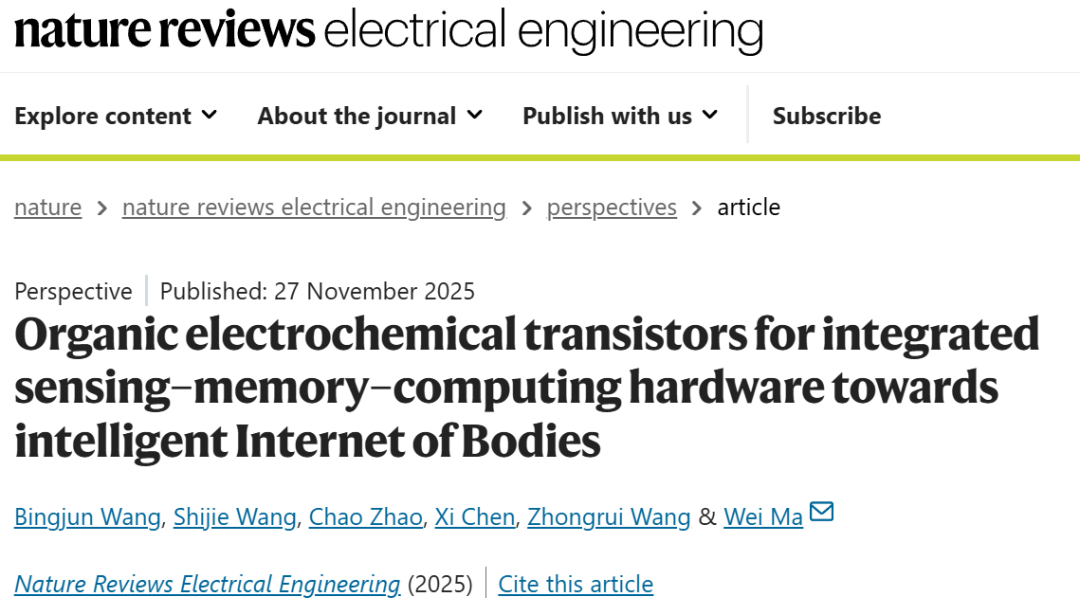 Wang, B., Wang, S., Zhao, C. et al. Organic electrochemical transistors for integrated sensing–memory–computing hardware towards intelligent Internet of Bodies. Nat Rev Electr Eng (2025).