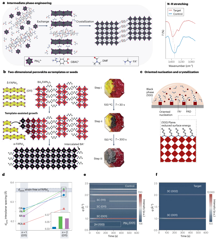 - 分子工程的多功能性:有机A位阳离子通过静电作用、氢键等多种非共价相互作用,可同时调控钙钛矿的结晶动力学、缺陷态、相稳定性及载流子传输行为。