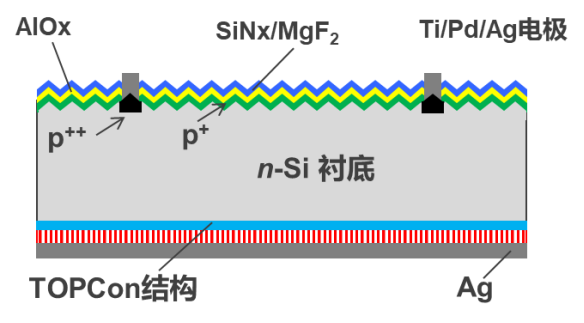 2013 年,德国 Fraunhofer 研究所在第 28 届欧洲 PVSEC 光伏大会上发表了N型 TOPCon 电池的论文。作为 PERT 电池的升级迭代技术,N型 TOPCon 晶硅电池在保留 PERT 电池核心优势的基础上进行了关键改进,不仅延续了钝化发射极、正背面钝化减反射膜,还在电池背表面引入隧穿氧化层与磷掺杂多晶硅(SiO2/PolySi)钝化接触结构。