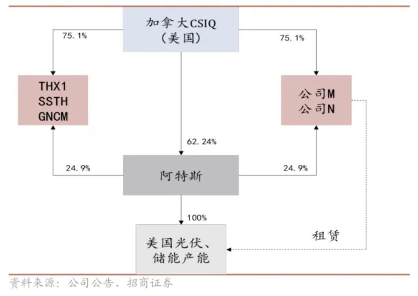 根据公告,公司拟与控股股东CSIQ新设合资公司M、N,分别负责美国光伏及储能业务与产能,公司持股24.9%,CSIQ持股75.1%。