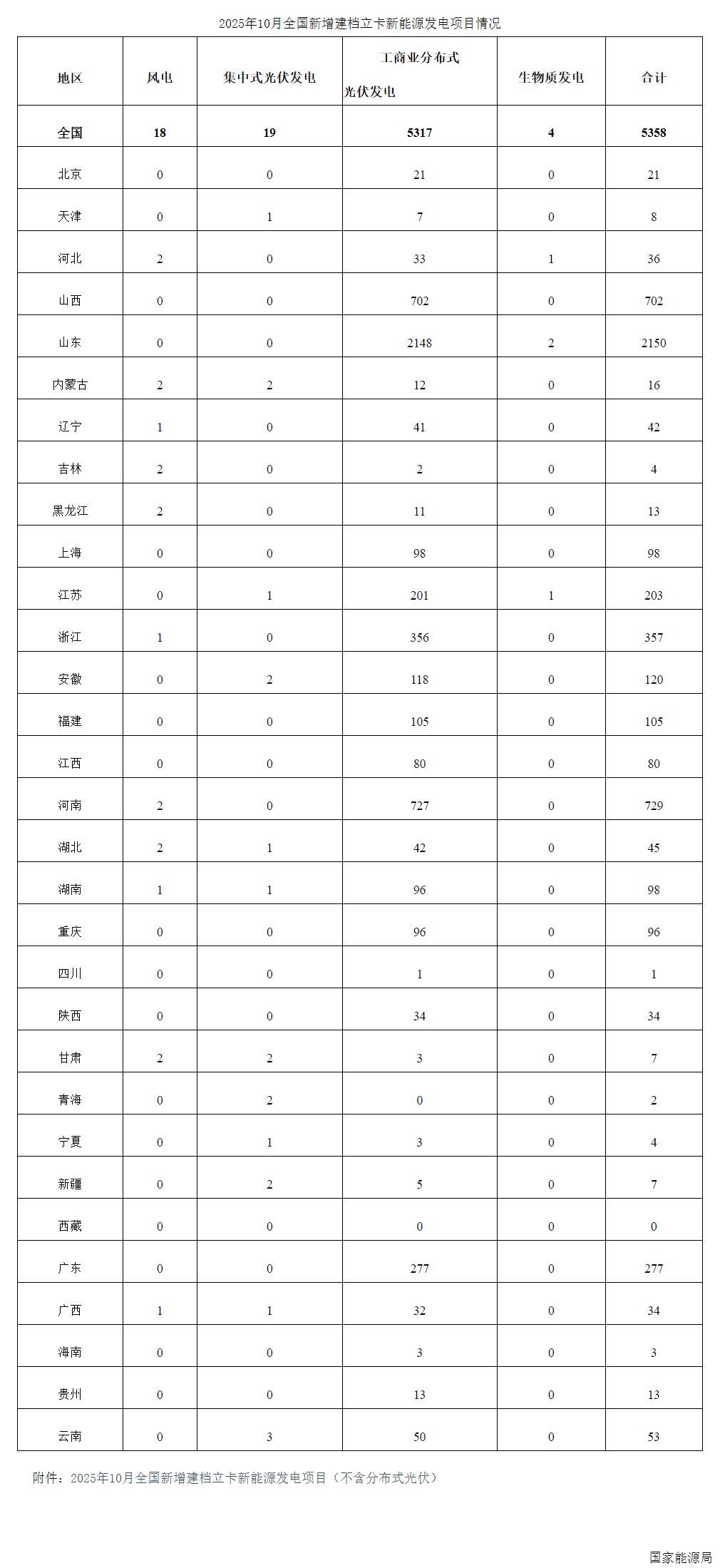光伏发电项目5336个!能源局发布2025年10月全国新增建档立卡新能源发电情况
