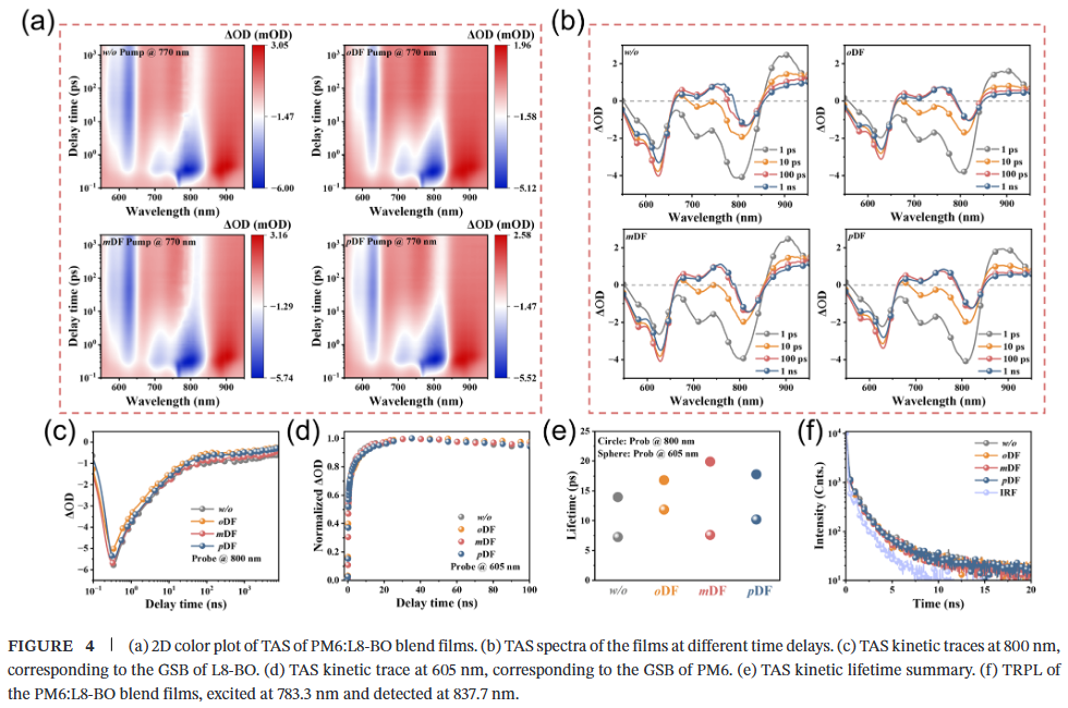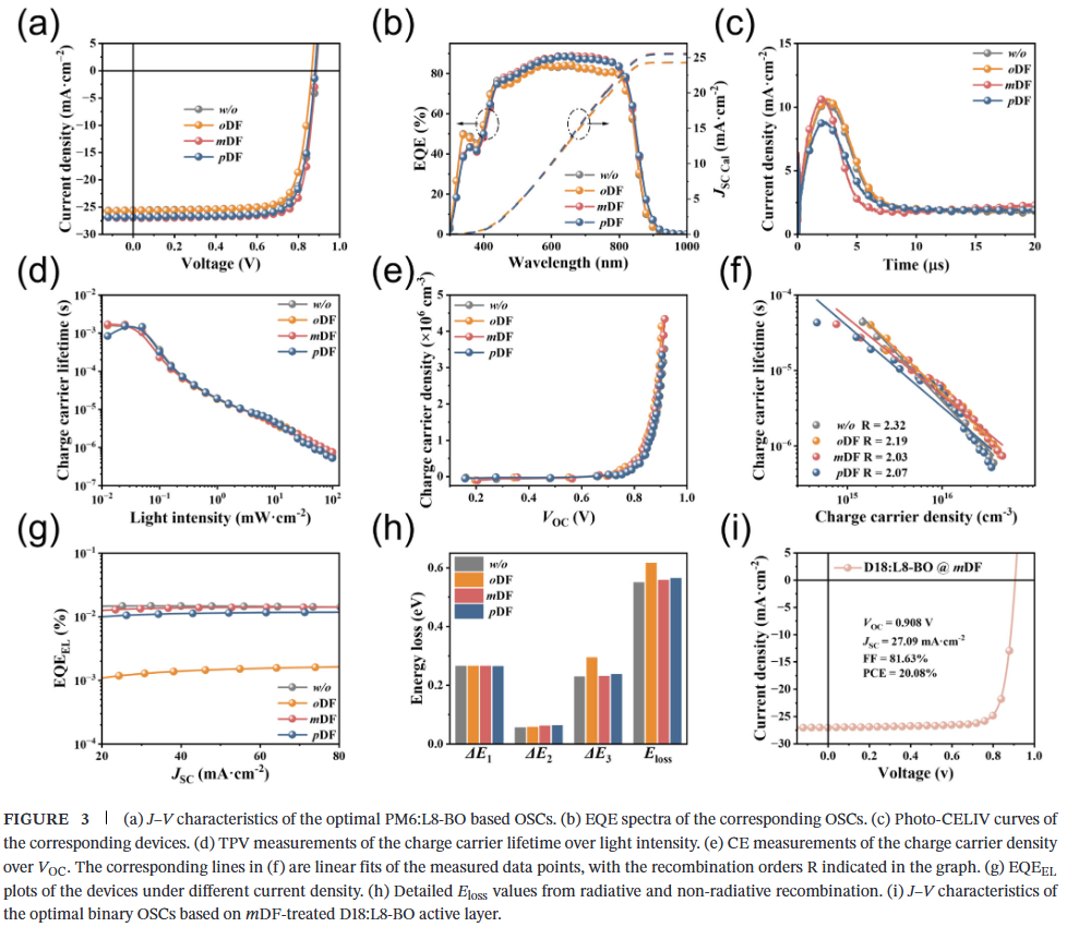 - 揭示普适性作用机理:结合原位光谱、理论计算与深度分析,阐明mDF与受体L8-BO的强相互作用及其完全蒸发特性,是同时实现高效率和低非辐射损失、避免残留导致性能衰退的关键。