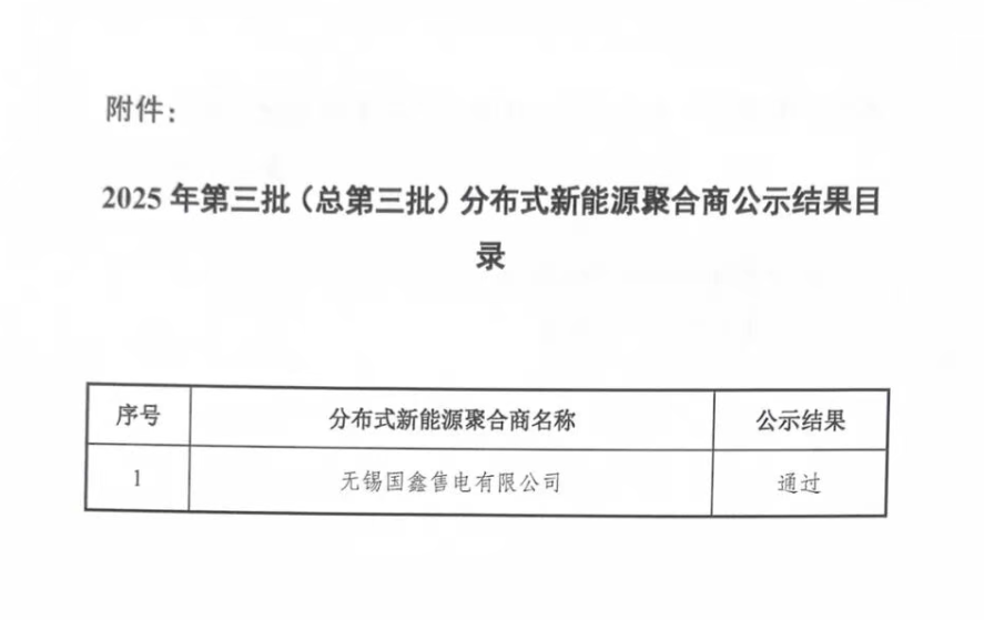 12月1日,江苏电力交易中心有限公司发布通知,无锡国鑫售电有限公司分布式新能源聚合商注册正式生效。连同此前11月28日的虚拟电厂注册生效,无锡国鑫成为继江苏协鑫售电有限公司之后,协鑫能科在江苏省内布局的又一家兼备两项关键资质的市场主体。