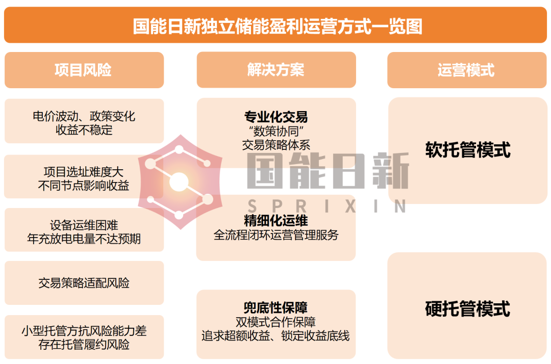 国能日新提供软托管、硬托管两种合作模式,适配不同储能电站需求,以收益“兜底”形式保障项目收益: