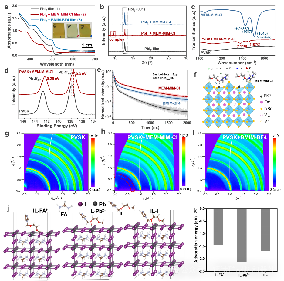 图3:离子液体调控的钙钛矿结晶过程。
