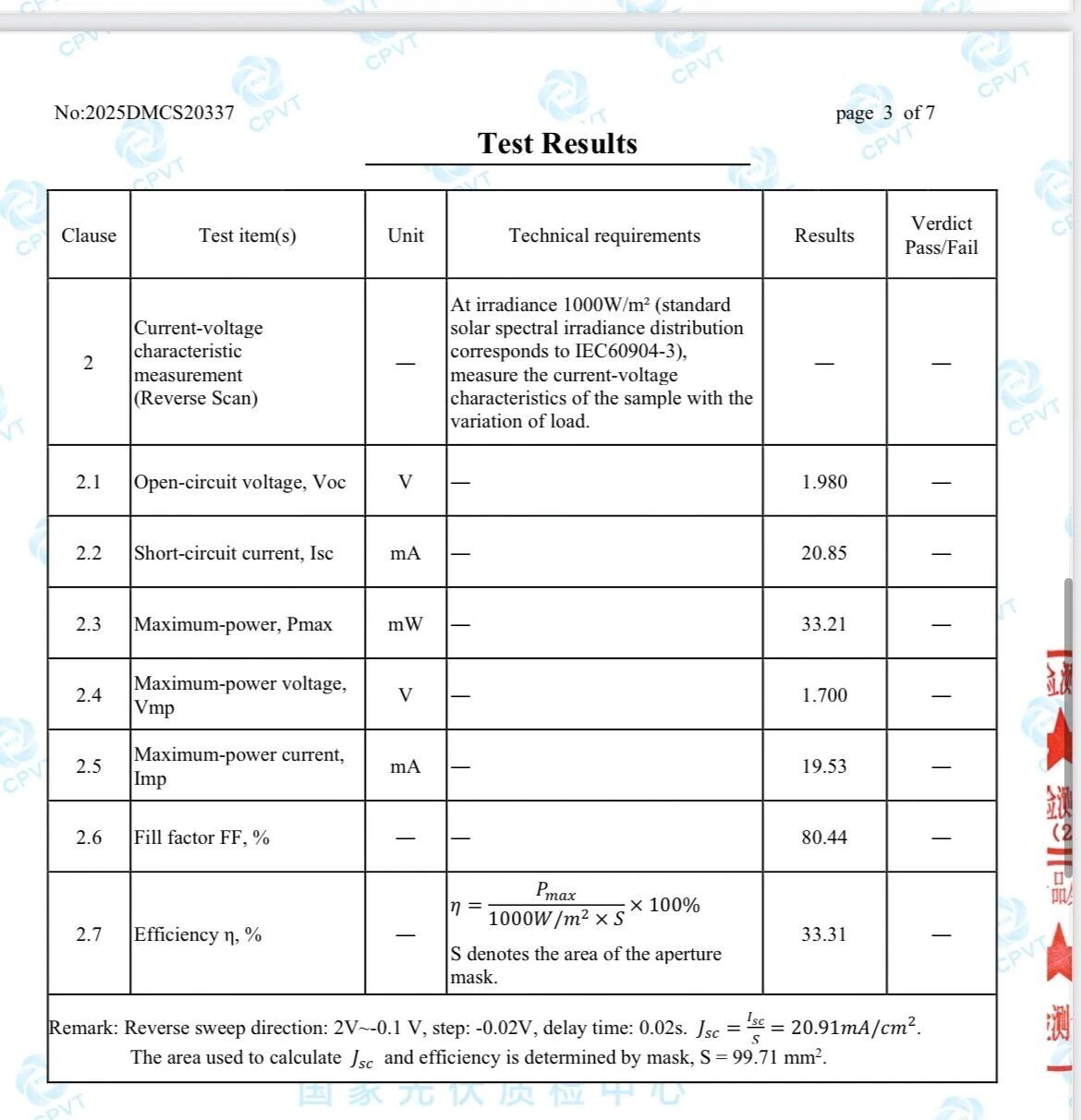 - 通过叠加多位点钝化等前沿界面技术,稳定晶界,全方位释放叠层电池光电转换潜力。