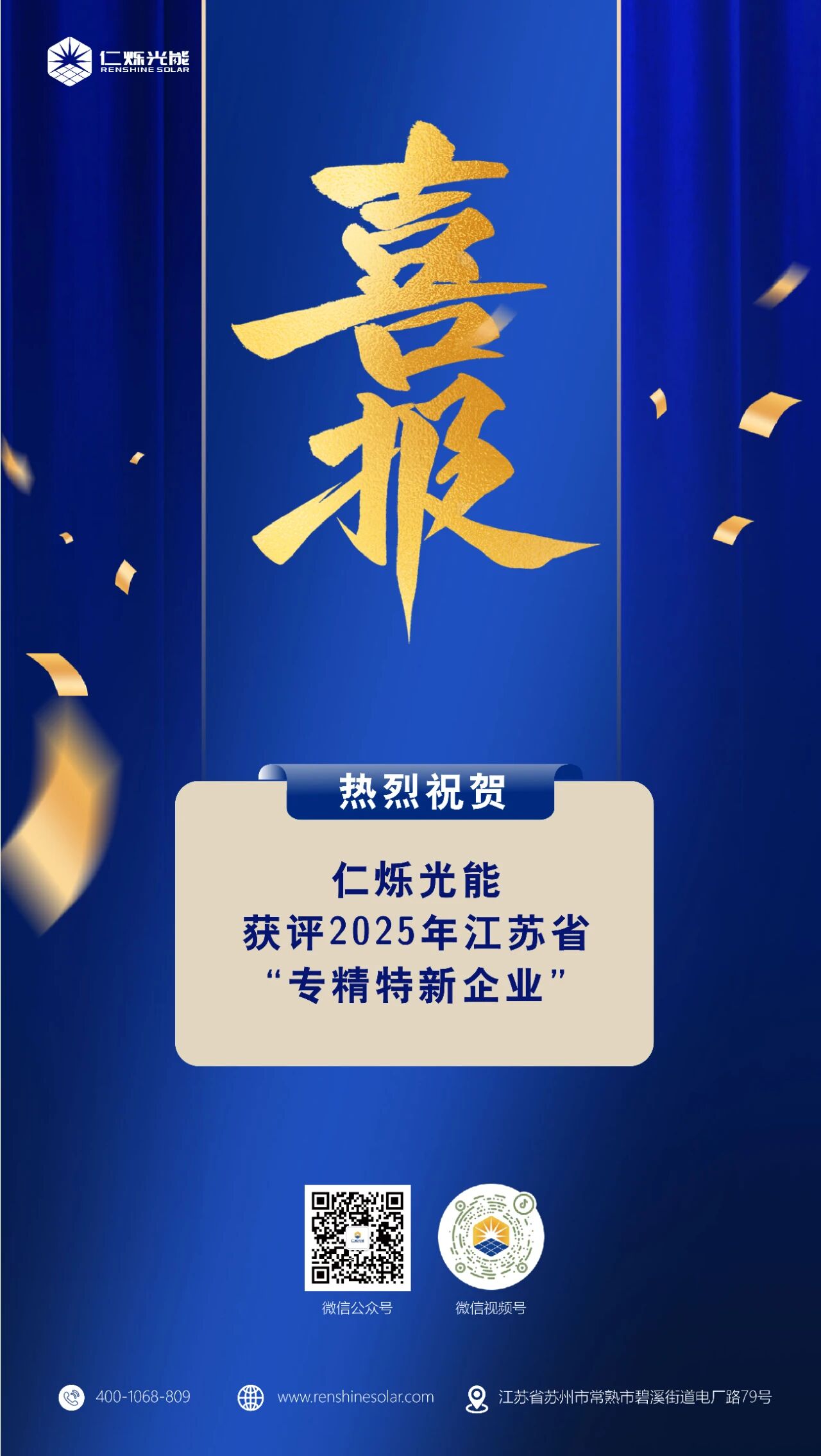 喜报!仁烁光能获评2025年江苏省“专精特新”企业