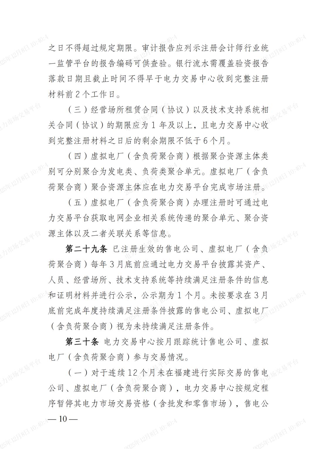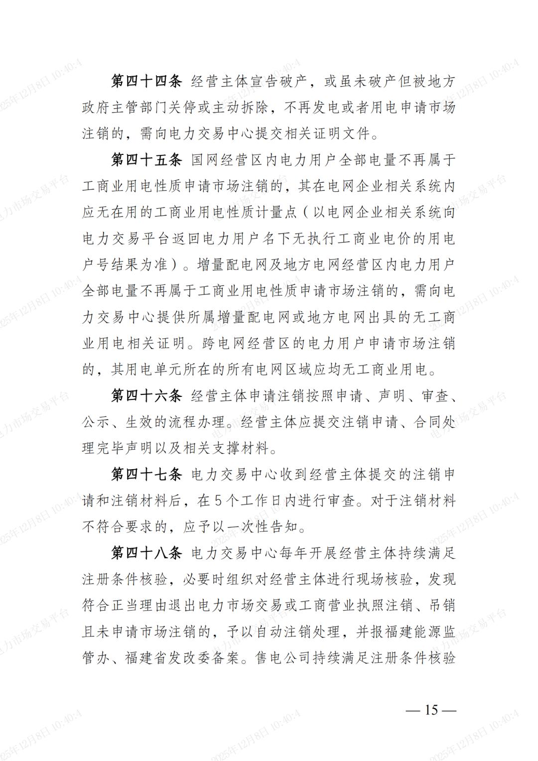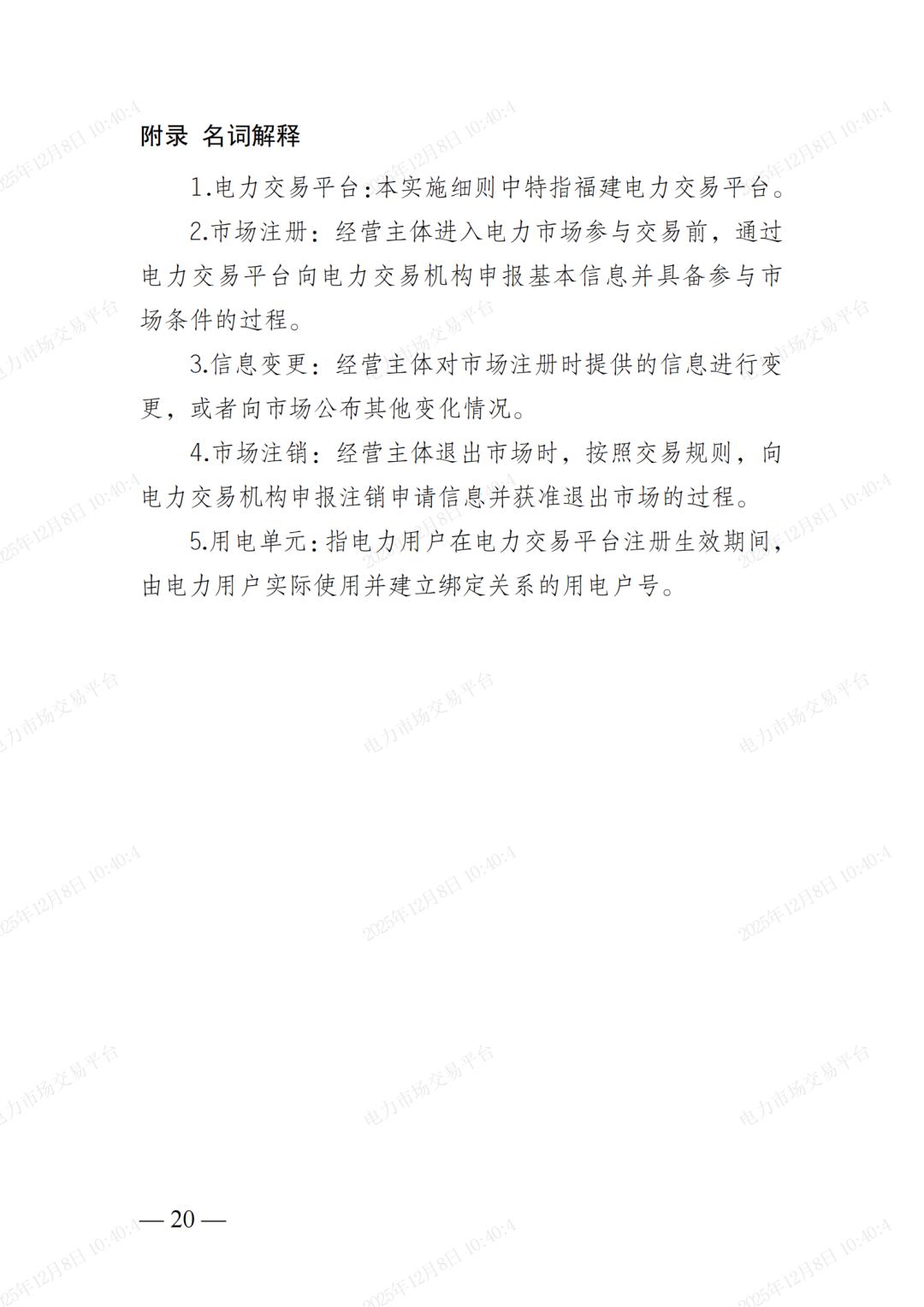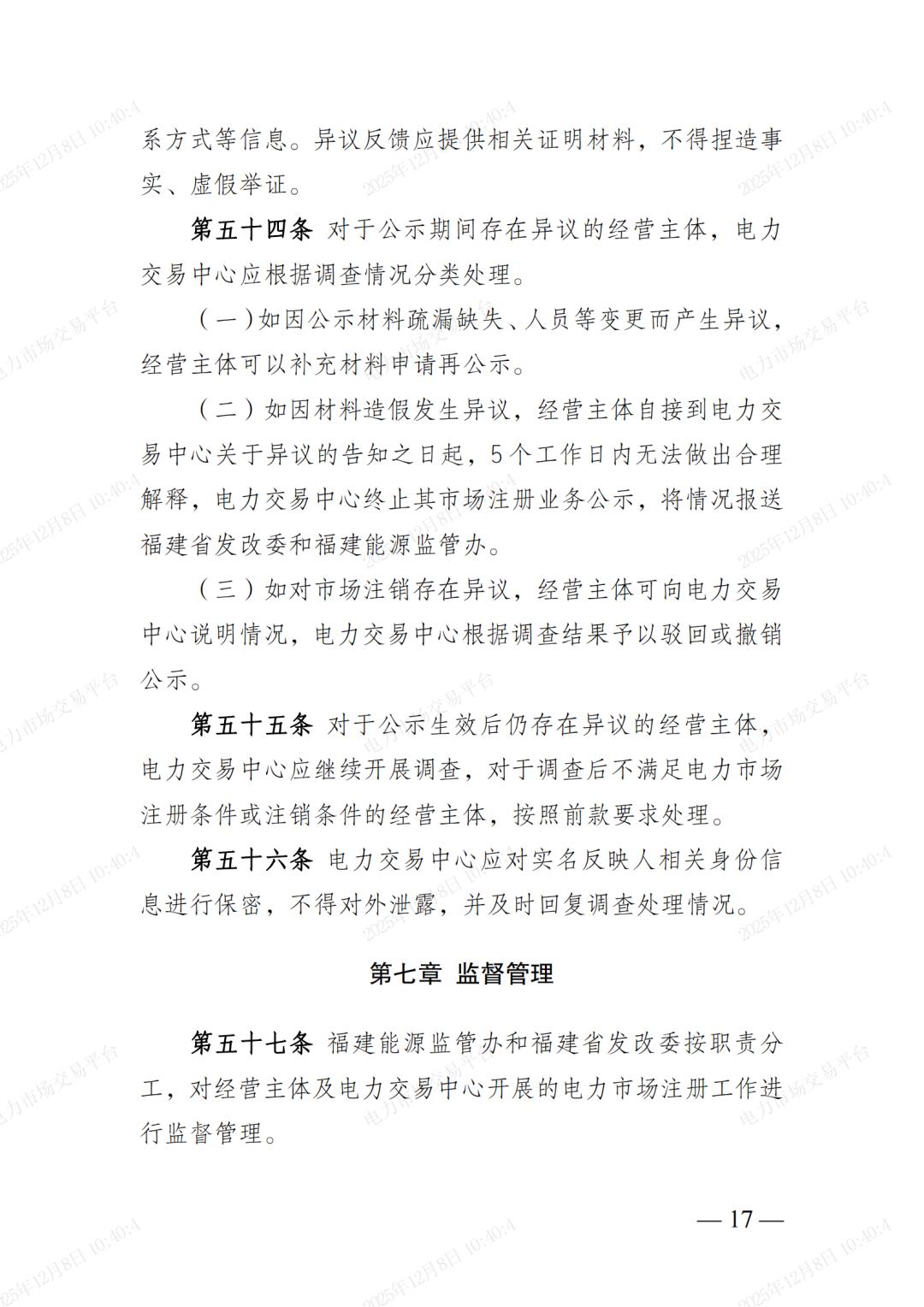 为进一步规范福建电力市场经营主体注册管理管理工作,保障市场注册工作平稳有序开展,切实维护市场秩序和经营主体合法权益,根据《国家能源局关于印发<电力市场注册基本规则>的通知》(国能发监管规〔2024〕76 号),福建电力交易中心会同相关部门编制形成《福建电力市场注册实施细则(试行)》(以下简称《细则》)。《细则》已完成向全社会公开征求意见并经福建省电力市场管理委员会审议通过,报福建能源监管办和福建省发改委最终审定,现予以印发。