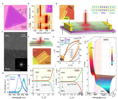 Ø颠覆性的器件几何结构:采用n-p-n横向结构,其光电响应特性与单一n-p结完全相反。这种几何结构提供了内置电势不对称性,有利于激子的自发扩散和操控,为功能设计增加了新的自由度。