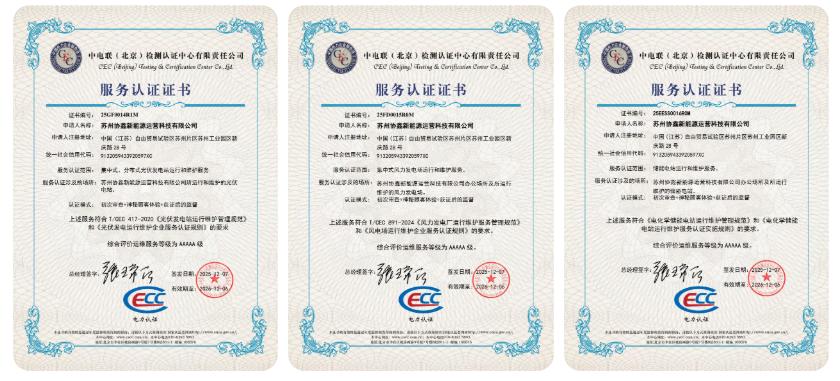 跻身全国顶尖行列!协鑫运营科技斩获风光储三项5A级运维服务认证