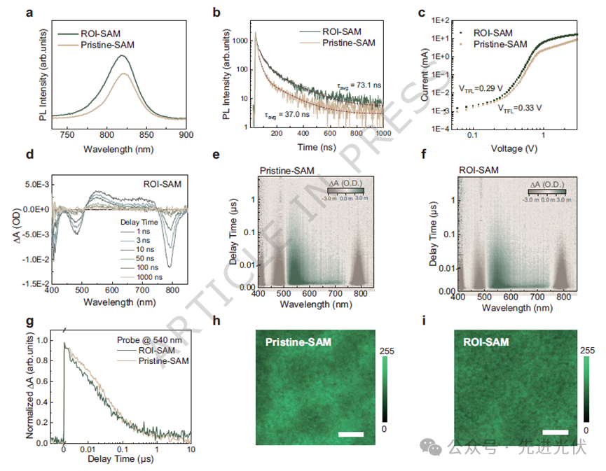 图3:SAM 层与钙钛矿薄膜光电性能优化验证