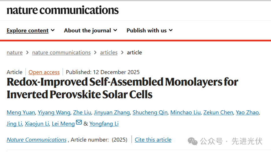 中科院孟磊Nat Commun:用于倒置钙钛矿太阳能电池的氧化还原改进型自组装单分子层来源:知光谷 发布时间:2025-12-15 18:17:21