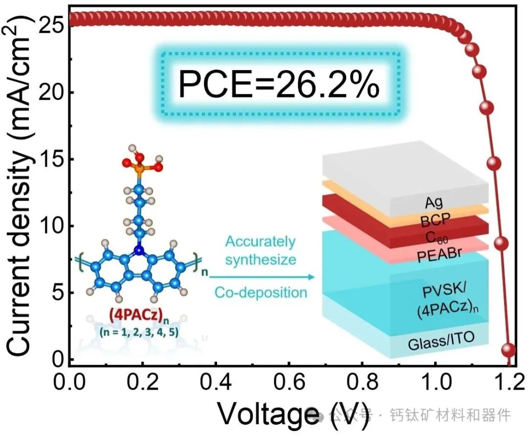 图1 基于4PACz寡聚物共沉积构建的器件结构示意图及相应的器件效率