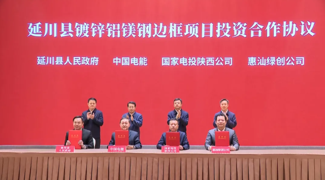 据无锡日报了解,12月8日,陕西省延川县政府、国电投电能成套设备有限公司、国电投陕西分公司与惠汕绿创(江苏)科技股份有限公司在无锡、延安两地主要领导共同见证下签署投资协议,宣布在延安延川梁家河建设光伏组件用镀锌铝镁钢边框智能制造项目。