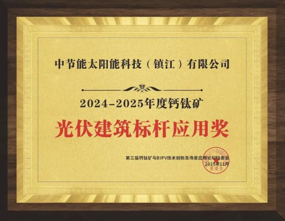 近日,由常州市光伏行业协会与光伏行研联合主办的“第三届钙钛矿与BIPV技术创新及场景应用论坛”暨“2024-2025年度BIPV行业颁奖盛典”在江苏常州成功举办。论坛围绕技术突破、标准体系建设及市场发展趋势展开深入探讨,汇聚众多行业专家与企业代表,共商光伏建筑一体化发展新蓝图。镇江公司凭借其在钙钛矿技术研发与应用实践成果,在本次盛典中荣获“光伏建筑标杆应用奖”。