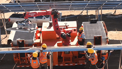 1小时完成约100块光伏板铺设,综合作业效率可达同等人工的2倍,它的正式“上岗”,标志着项目光伏组件安装,正式从传统“人工作业”,迈入“智能安装”新阶段